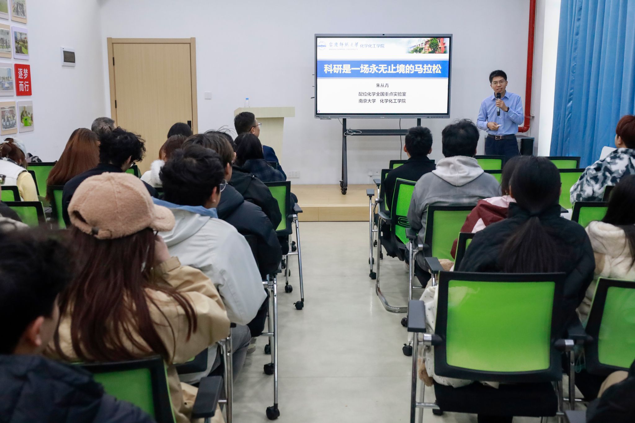 11月27日,365上市公司“校友开讲啦”讲座在学校“一站式”社区成功举办,化学专业2008届校友、南京大学至诚特聘教授、博导朱从青带来了一场兼具学术深度与人文情怀的分享,福建师范大学教授、博导姚传好校友及学院近百名师生代表参会,365上市公司党委负责人主持讲座。