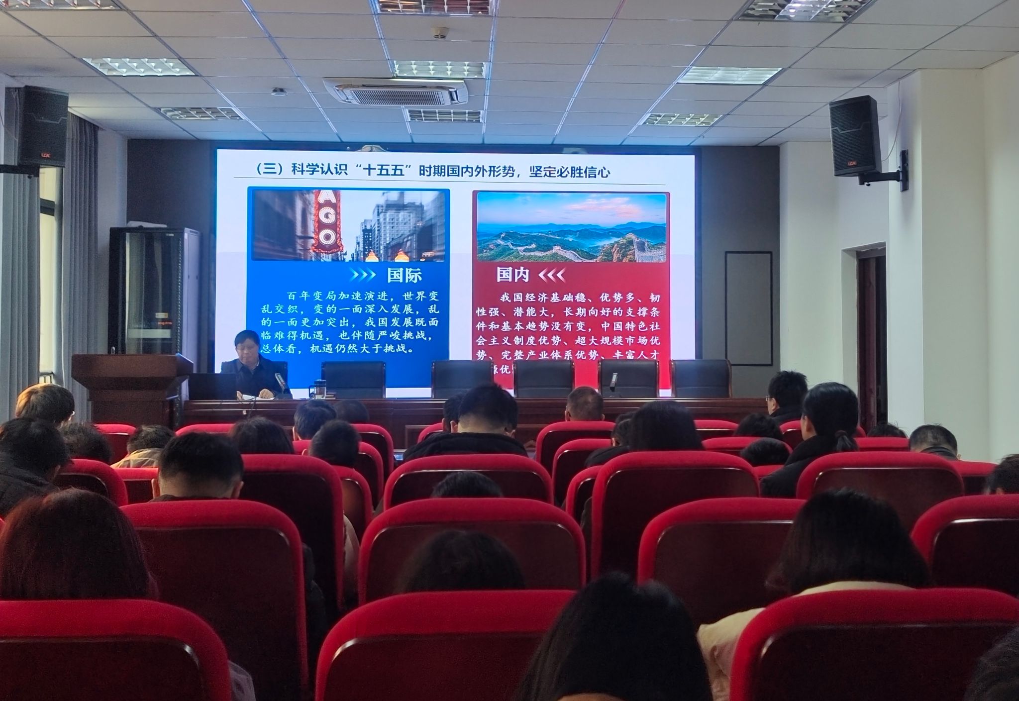 12月17日,365上市公司党委书记李新建以《深学笃行党的二十届四中全会精神 奋力谱写学院高质量发展新篇章》为题在全体教职工中进行党的二十届四中全会精神专题宣讲。